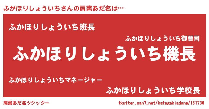| 男性向けラノベタイトル風あだ名 | 『緋弾のフカホリショウイチ』 |