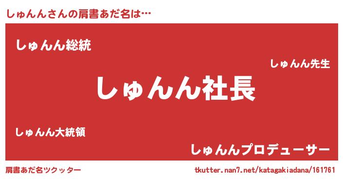 | ヘコむあだ名 | 『しゅにー』『しゅんん(遠い目)』 |