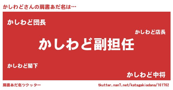 | 意味不明あだ名 | 『永久保存かしわど』『ペロリンかしわど』 |