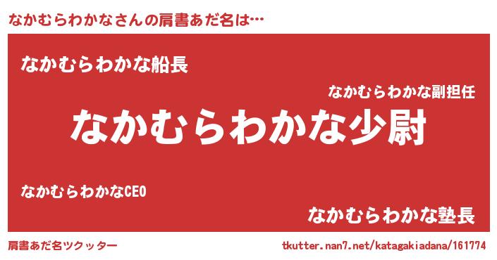 | 女子向けラノベタイトル風あだ名 | 『なかむらわかなの玉の輿計画!』 |