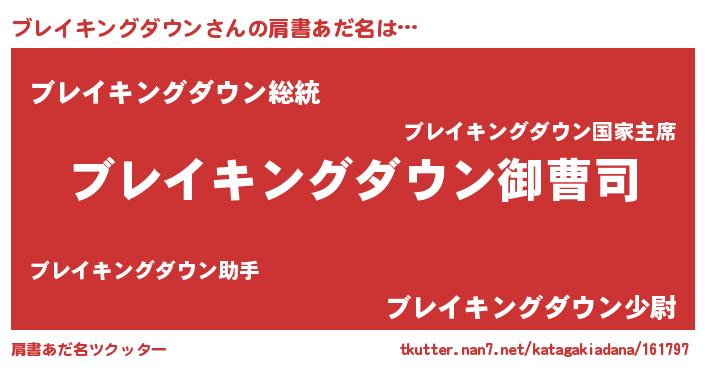 | 男性向けラノベタイトル風あだ名 | 『ブレイキングダウンの憂鬱』 |