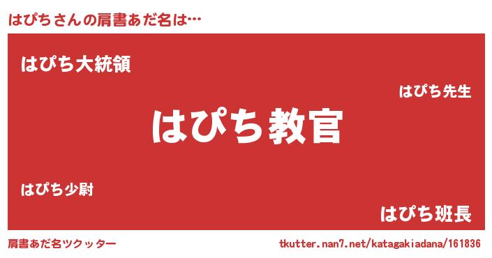 | 胡散臭い通販商品みたいなあだ名 | 『あなたにだけ特別に提供する100年もののヴィンテージワイン…その名も「はぴち」』 |