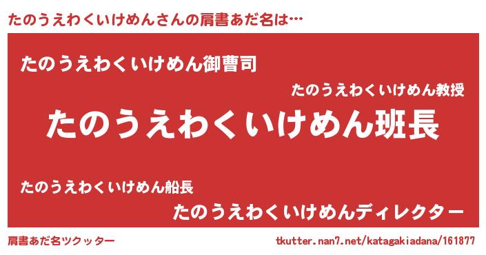 | 欧米人風あだ名 | 『ウサインたのうえわくいけめん』 |