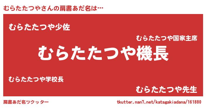 | 男性向けラノベタイトル風あだ名 | 『うちのむらたたつやが世界を掌握している!』 |