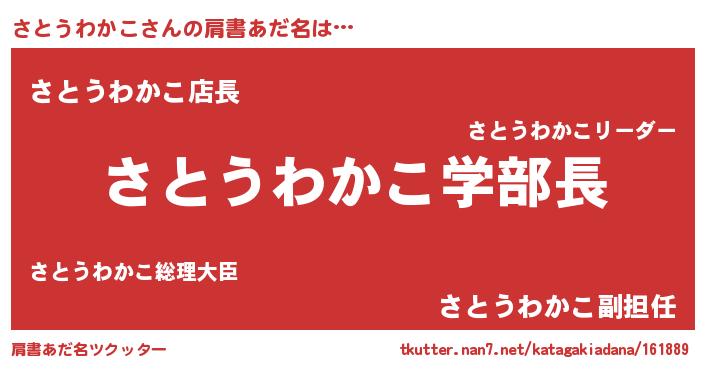| 男性向けラノベタイトル風あだ名 | 『ノーゲーム・ノーサトウワカコ』 |