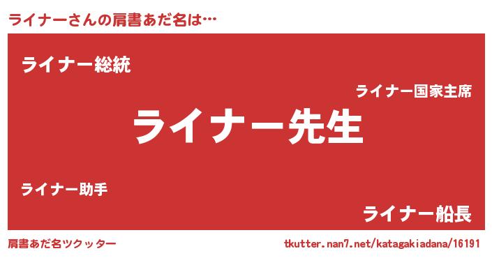 | ヘコむあだ名 | 『ライナー(小並感)』『豆乳』 |
