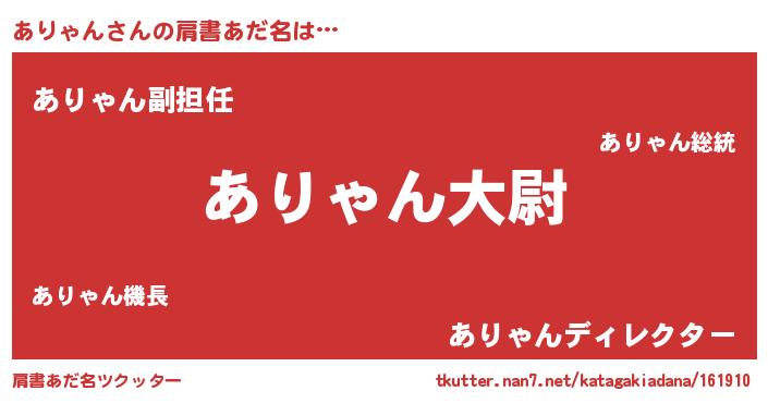 | 胡散臭い通販商品みたいなあだ名 | 『絶対に幸福をもたらす健康食品…その名も「ありゃん」』 |