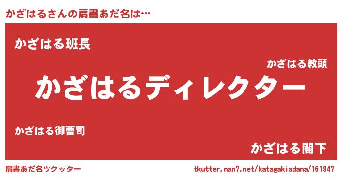 | ヘコむあだ名 | 『かざ太郎』『かざはる(笑)』 |