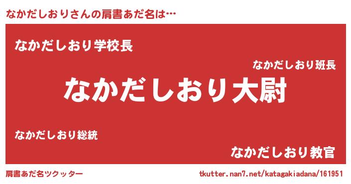 | 料理風あだ名 | 『なかだしおりごはん』 |