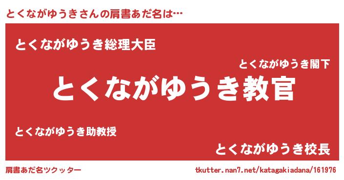 | 意味不明あだ名 | 『住所不定無職とくながゆうき(85歳)』 |