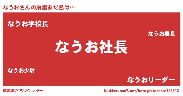 | ヒーロー風カッコイイあだ名 | 『スーパーナウオ』『友情の使者なうお』 |