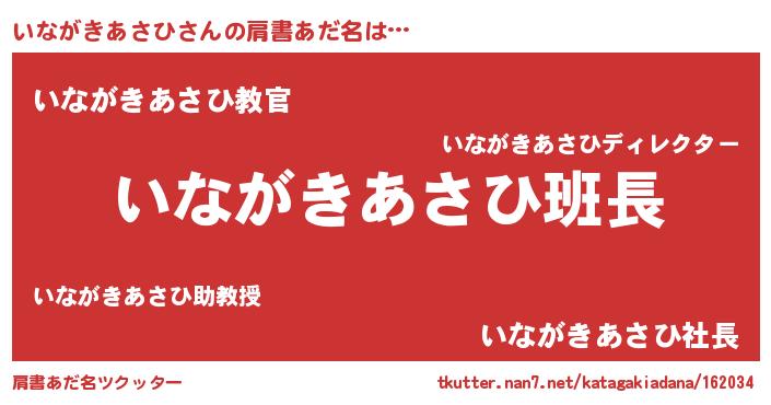 | 意味不明あだ名 | 『とにかく怪しいいながきあさひ』 |