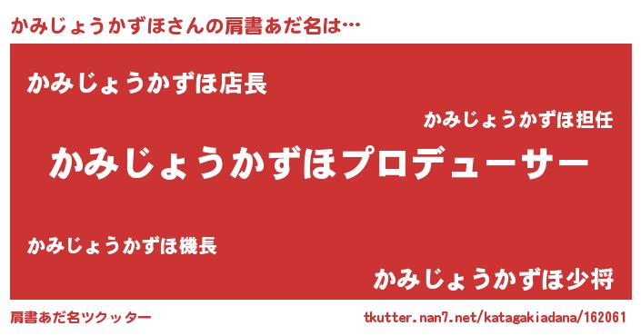 | 男性向けラノベタイトル風あだ名 | 『はたらくかみじょうかずほさま!』 |