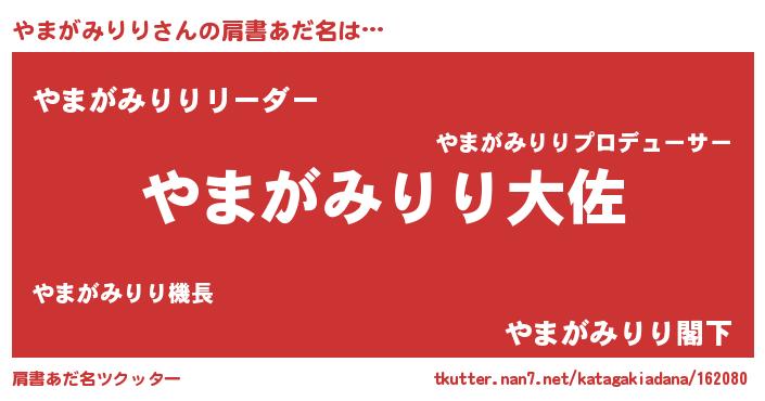 | 胡散臭い通販商品みたいなあだ名 | 『信頼と実績のサプリメント…その名も「やまがみりり」』 |
