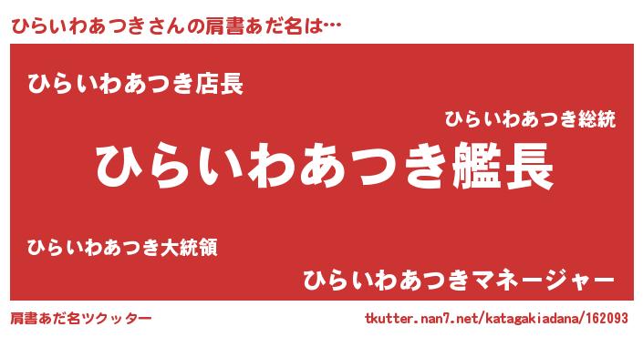 | ヒーロー風カッコイイあだ名 | 『スーパーヒライワアツキ』 |