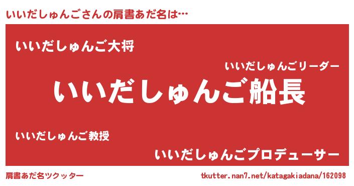 | 胡散臭い通販商品みたいなあだ名 | 『信頼と実績のサプリメント…その名も「いいだしゅんご」』 |