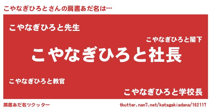 | 男性向けラノベタイトル風あだ名 | 『こやなぎひろとの憂鬱』 |