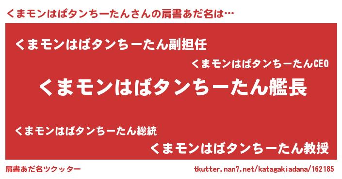 | 男性向けラノベタイトル風あだ名 | 『緋弾のクマモンハバタンチータン』 |