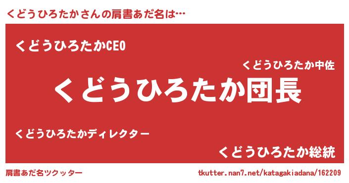 | ポケモン風あだ名 | 『ヒクドウヒロタカ』『クドチュウ』 |