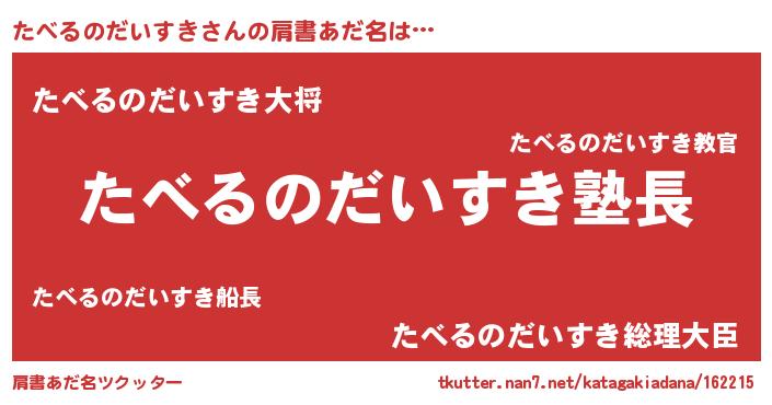 | 意味不明あだ名 | 『とにかく怪しいたべるのだいすき』 |