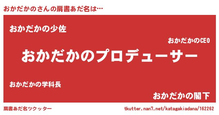 | 男性向けラノベタイトル風あだ名 | 『はたらくおかだかのさま!』 |