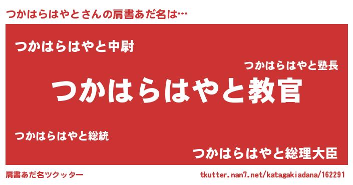 | 意味不明あだ名 | 『住所不定無職つかはらはやと(93歳)』 |