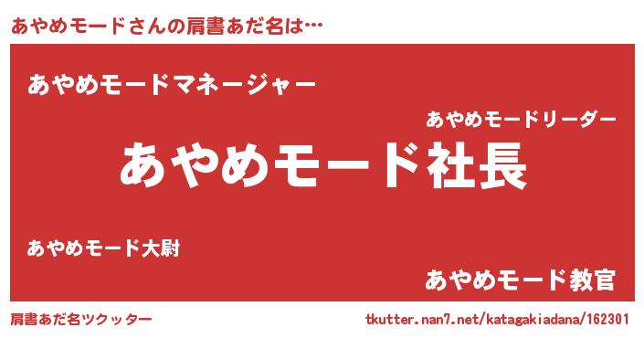 | 胡散臭い通販商品みたいなあだ名 | 『億万長者になれるブレスレット…その名も「あやめモード」』 |
