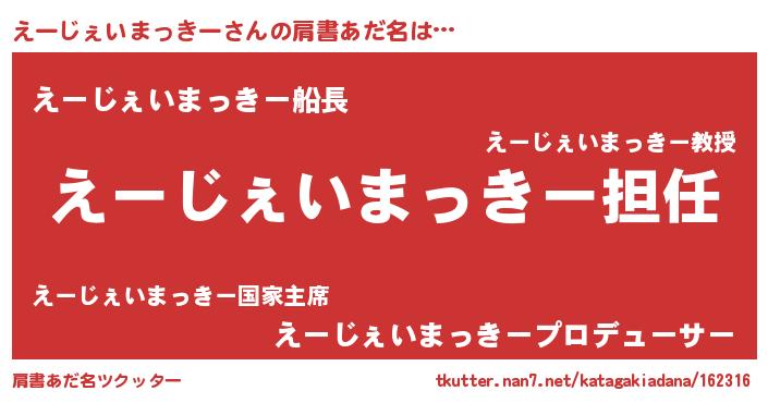 | ヘコむあだ名 | 『えーじぇいまっきー(震え声)』『なまこ酢』 |
