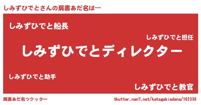 | 意味不明あだ名 | 『住所不定無職しみずひでと(56歳)』 |