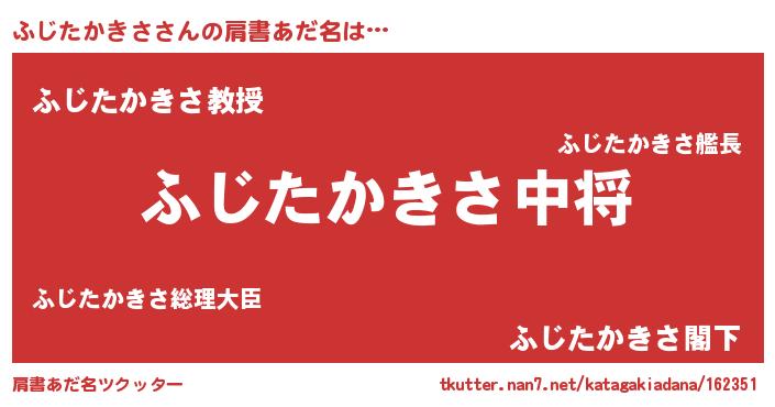 | 男性向けラノベタイトル風あだ名 | 『ふじたかきさ~年齢イコール彼女いない歴の魔法使い~』 |