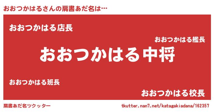 | 男性向けラノベタイトル風あだ名 | 『転生したらおおつかはるだった件』 |