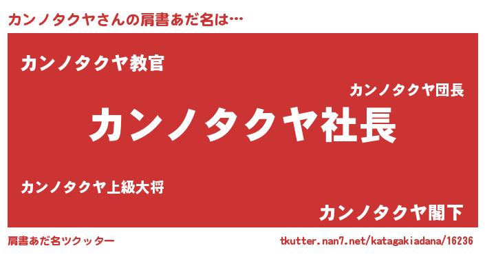 | 欧米人風あだ名 | 『マイケルカンノタクヤ』 |