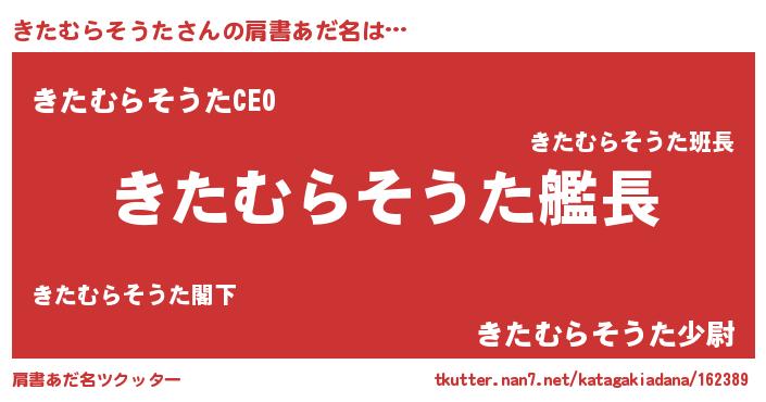 | ヒーロー風カッコイイあだ名 | 『スーパーキタムラソウタ』 |
