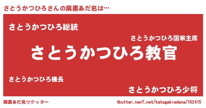 | ヒーロー風カッコイイあだ名 | 『仮面サトダー』『ネオサトウカツヒロ』 |