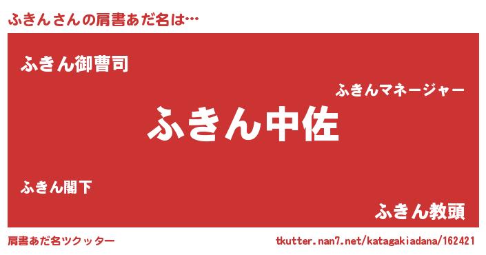 | ヘコむあだ名 | 『ふきにー』『ふきん(遠い目)』 |