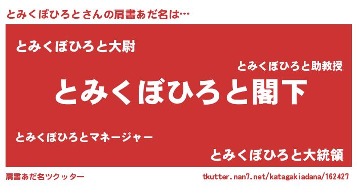 | 男性向けラノベタイトル風あだ名 | 『Re:とみくぼひろとから始める異世界生活』 |