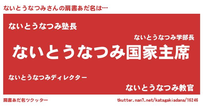 | 女子向けラノベタイトル風あだ名 | 『ないとうなつみの雑貨屋さん』 |