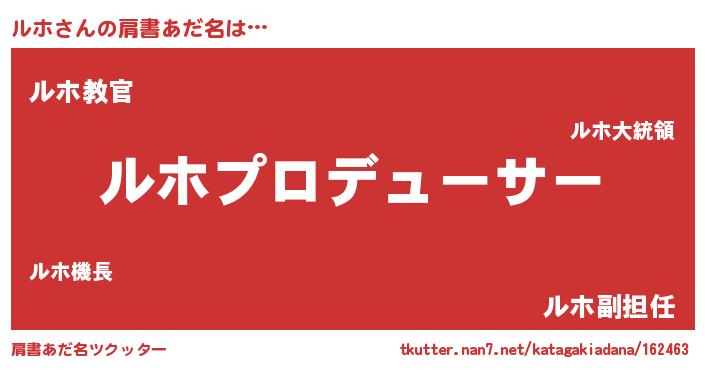 | ポケモン風あだ名 | 『ルホゴンZ』『ルーホイ』『ゼニルホ』 |
