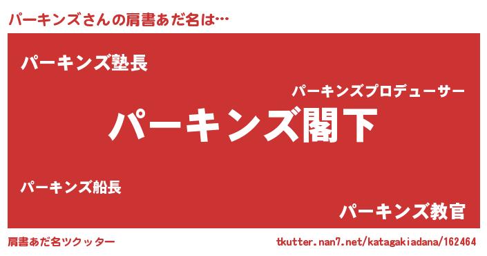 | 意味不明あだ名 | 『自称パーキンズ』 |