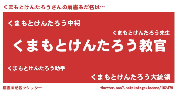 | 女子向けラノベタイトル風あだ名 | 『乙女ゲームの破滅フラグしかない悪役くまもとけんたろうに転生してしまった…』 |