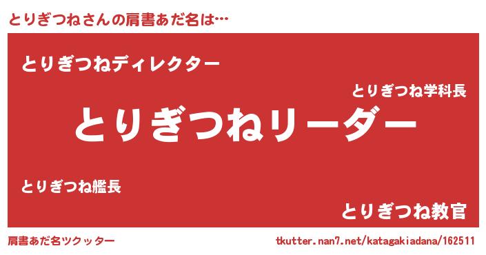 | 意味不明あだ名 | 『とにかく怪しいとりぎつね』 |