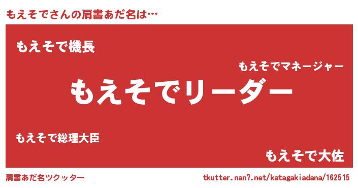 | 女子向けラノベタイトル風あだ名 | 『もえそでは平凡を望む』 |