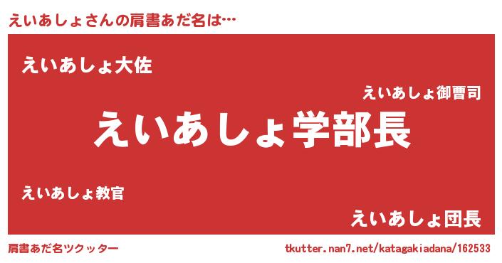 | ヘコむあだ名 | 『えいぷりん』『えいふぇ~』『豆乳』 |