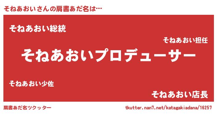 | 男性向けラノベタイトル風あだ名 | 『そねあおいに滅ぼされるだけの簡単なお仕事です』 |
