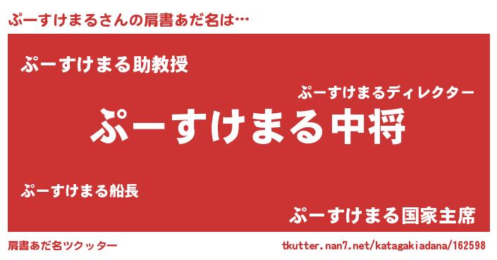 | 男性向けラノベタイトル風あだ名 | 『ぷーすけまる~年齢イコール彼女いない歴の魔法使い~』 |