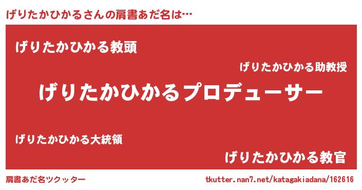| 男性向けラノベタイトル風あだ名 | 『はたらくげりたかひかるさま!』 |