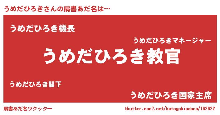 | ヒーロー風カッコイイあだ名 | 『仮面ウメダー』『究極戦士ウメダヒロキ』 |