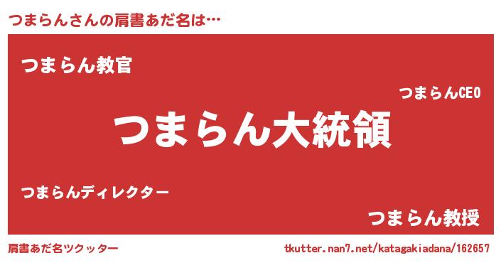 | ヒーロー風カッコイイあだ名 | 『ウルトラつまらんマン』『仮面ツマダー』 |