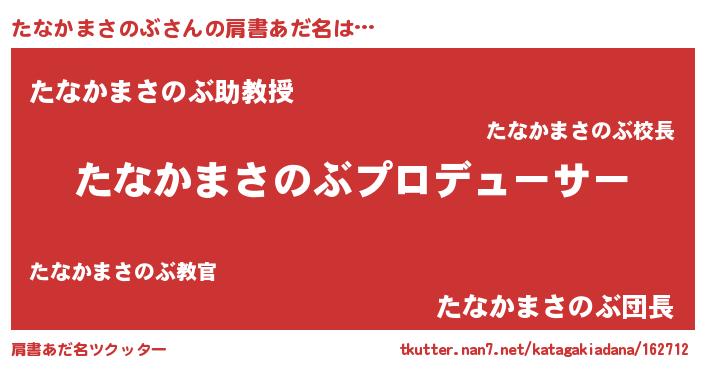 | ヘコむあだ名 | 『たなっちょ』『たなかまさのぶ(笑)』 |