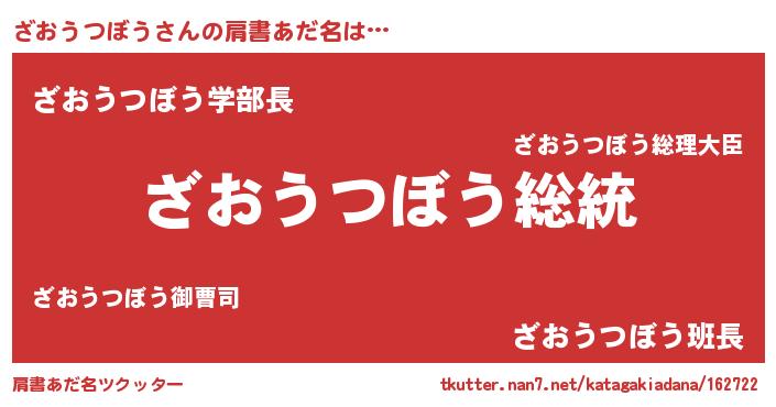 | 男性向けラノベタイトル風あだ名 | 『Re:ざおうつぼうから始める異世界生活』 |